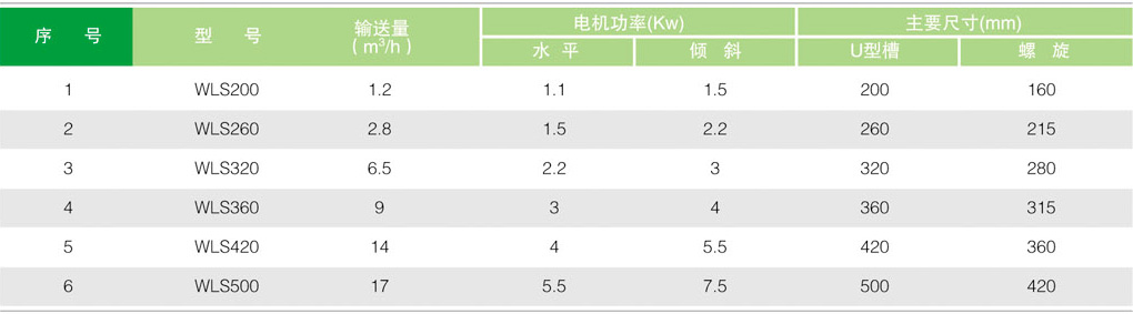 料,能有效傳送干燥的、潮濕的、有粘性的、粉末狀的、粗糙的物料。WLS系列無軸螺旋輸送機(jī)的設(shè)計(jì)能有效地防止堵塞和纏繞物的影響。這種設(shè)計(jì) 使輸送機(jī)更方便地輸送不同尺寸的物料。